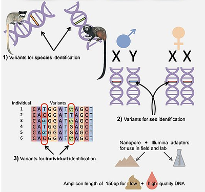 Developing an genotyping tool for individual identification of saddleback and emperor tamarins using non-invasive and invasive samples, and both Illumina and Nanopore sequencing platforms.