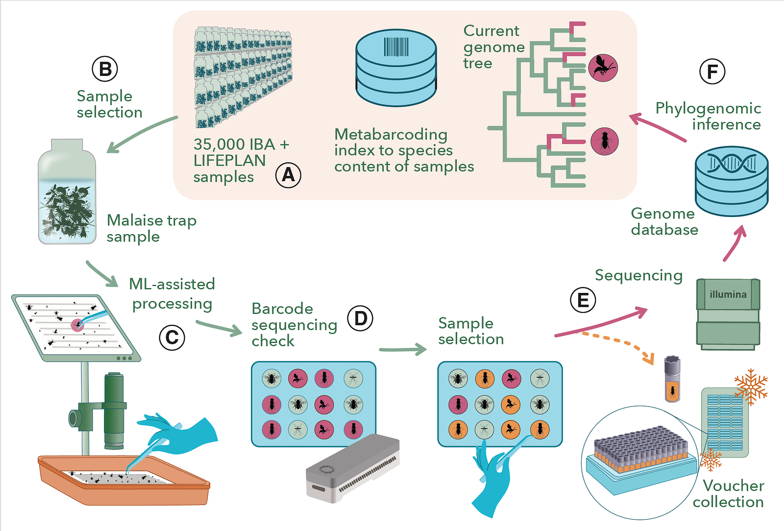 I collaborate closely with the Insect Biome Atlas project (IBA), who in 2019 led the largest citizen science project in Sweden and sampled thousands of insect traps across the country. Our collaborators at IBA processed the metabarcoding data, while I worked on the metagenomics portion. Our first manuscript, which compares the metabarcoding and metagenomics findings, as well as explores the population genomics possibilities of the data, is available here.